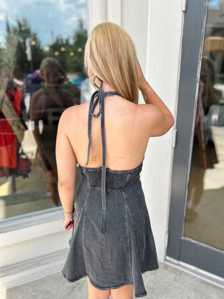 Channel effortless cool in the Lennon Halter Denim Dress. Its open pleats and halter neck design bring a breezy, playful vibe to your Fall wardrobe. Perfect for twirling through sunny days or casual nights out, this dress combines comfort with a fun, flirty style.